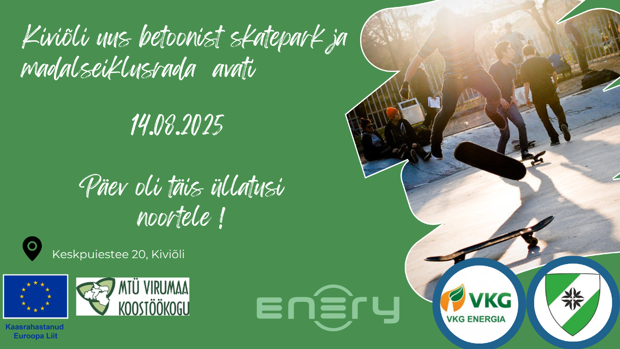Projekt „Betoonist skatepargi rajamine Kiviõlli” viidi ellu Virumaa Koostöökogu LEADER-programmi meetmest „Kogukonnad ja elukeskkond” saadud toetuse abil. Madalseiklusraja rajamine toimus Lüganuse valla kaasava eelarve programmi raames, mille 2025. aasta hääletusel kogus see enim toetust.