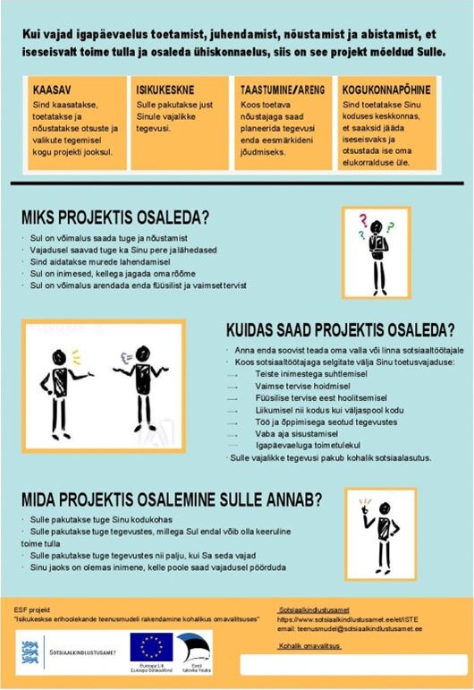 Projekti raames katsetatakse komponendipõhist teenusmudelit, kus psüühilise erivajadusega inimesele ja tema lähedastele osutatakse abi ühe tervikuna, lähtudes inimesest ja tema perekonna vajadustest. Teenuste korraldaja rollis on kohalik omavalitsus. See tähendab, et projektis osalev inimene ei pea enam läbima erihoolekande teenuste vajaduse hindamist Sotsiaalkindlustusametis, vaid saab seda teha oma piirkonna kohalikus omavalitsuses.