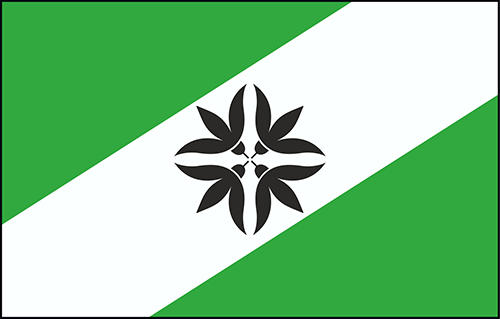 Lipu kirjeldus: Rohelisel taustal valge laiendatud pinnaga ärastala ja must õisikrist sookailu õitest.