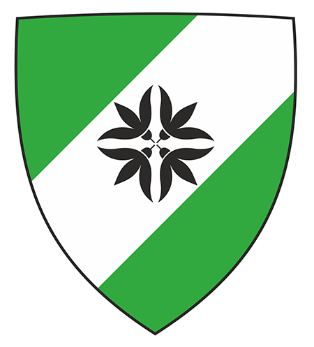 Vapi kirjeldus: Rohelisel kilbil hõbedane/valge laiendatud pinnaga ärastala ja must õisikrist sookailu õitest.