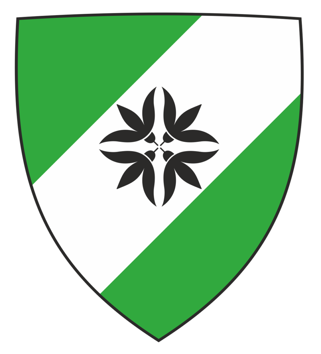 Vapi kirjeldus: Rohelisel kilbil hõbedane/valge laiendatud pinnaga ärastala ja must õisikrist sookailu õitest.