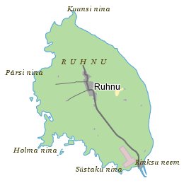 Ruhnu saar kuulub Saare maakonda ja moodustab iseseisva Ruhnu valla. Saare pindala on 11,9 km², pikkus 5,5 ja laius 3,5 km. Lähim koht mandrile on 37 km kaugusel asuv Kolka neem Kuramaal Lätis. Kuressaarde on linnulennult 70, Pärnusse 96 ja Kihnu saareni 54 km.